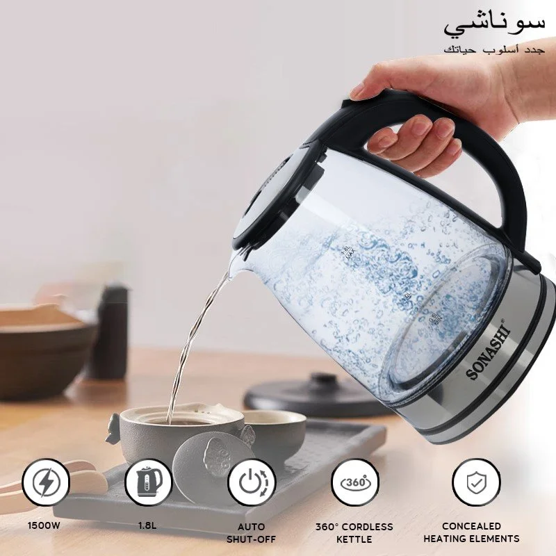 Bouilloire en verre 1.8L 1500W Sonashi SKT-1809