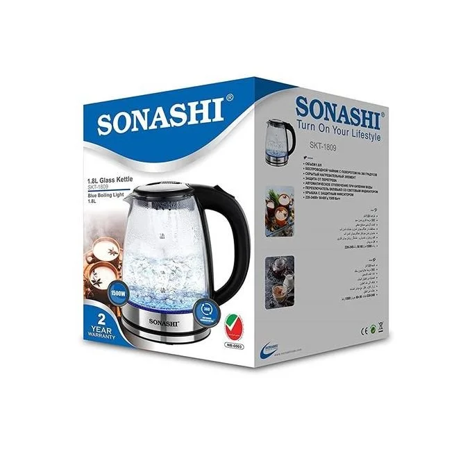 Bouilloire en verre LED 1.8L 1500W Sonashi SKT-1809 1 4900 د.ج